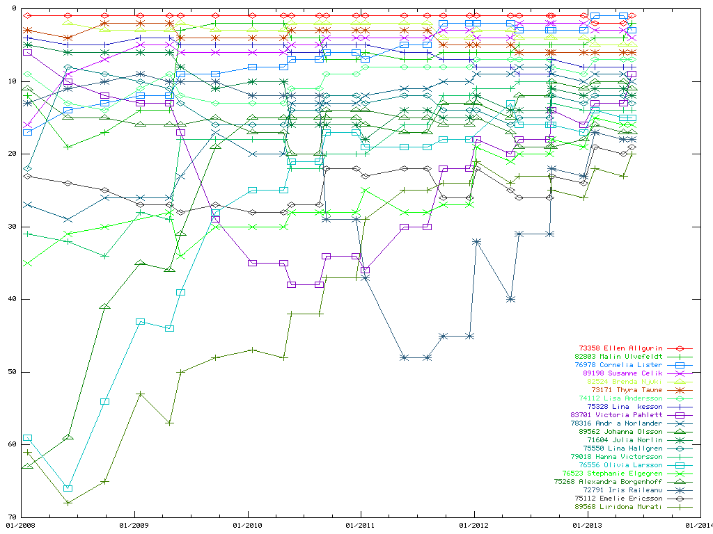 Flickor Top-20 per årskull
