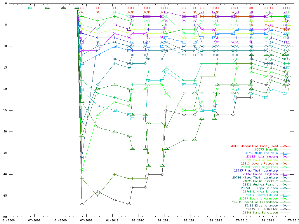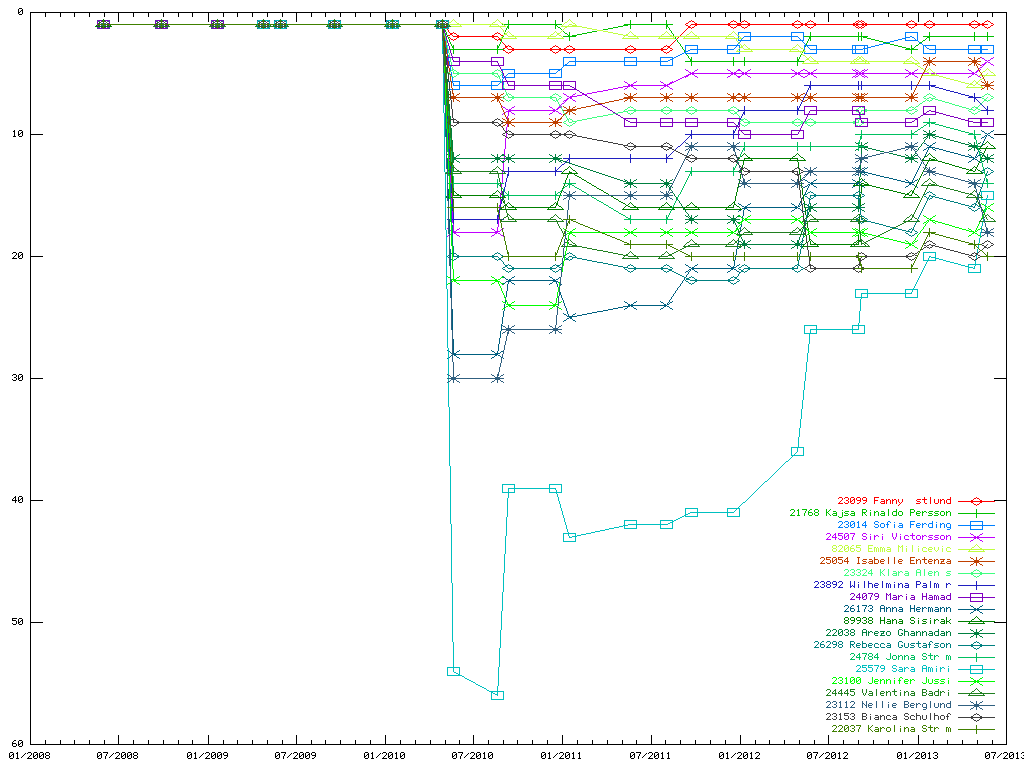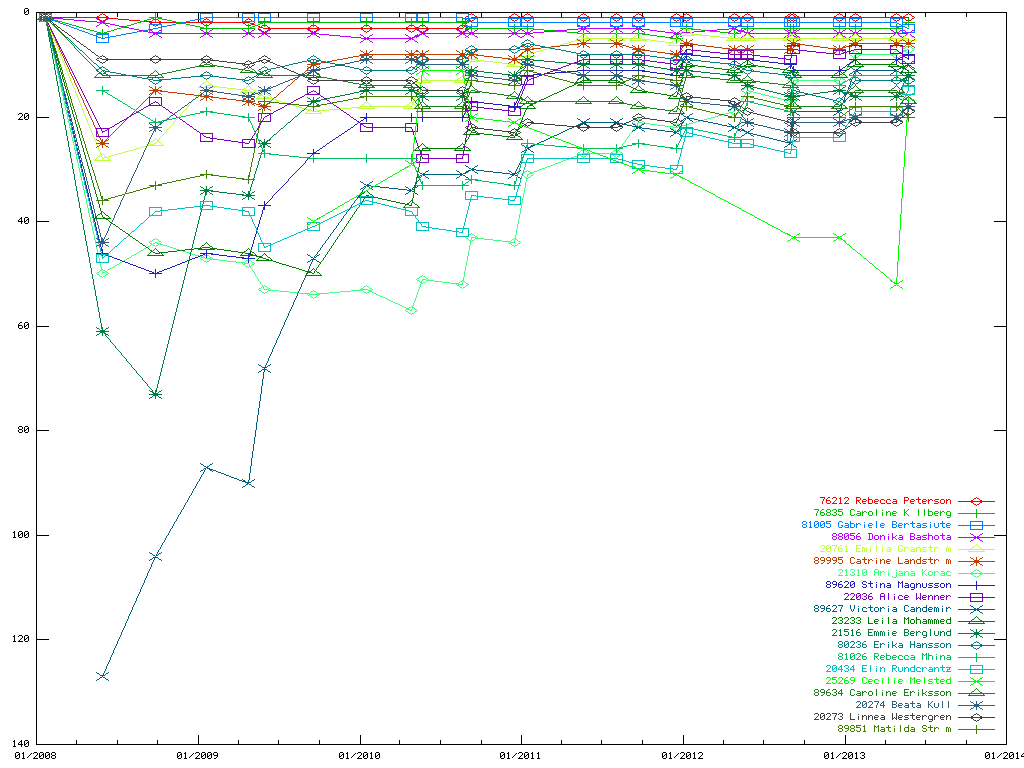 Nedanstående grafer visar historiska ranking-positioner för spelare rankade top-20 (2013-06-12).